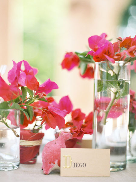 Ανακατέψτε μεταξύ τους ροζ και φούξια βουκαμβίλιες και τοποθετήστε τις στο κέντρο του τραπεζιού όπως φαίνεται στις παρακάτω φωτογραφίες.